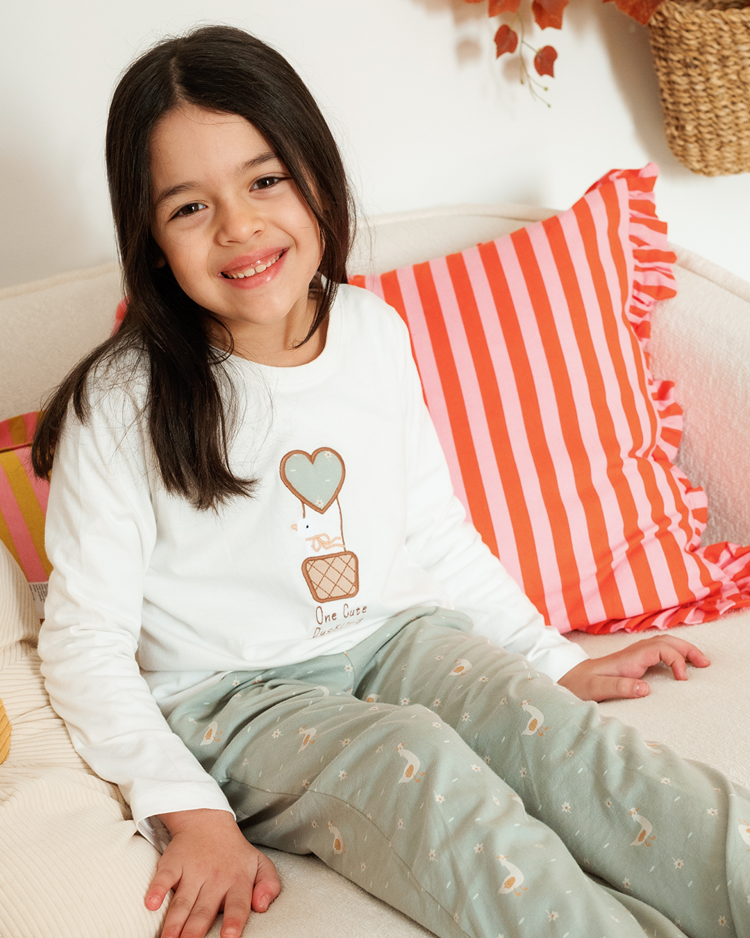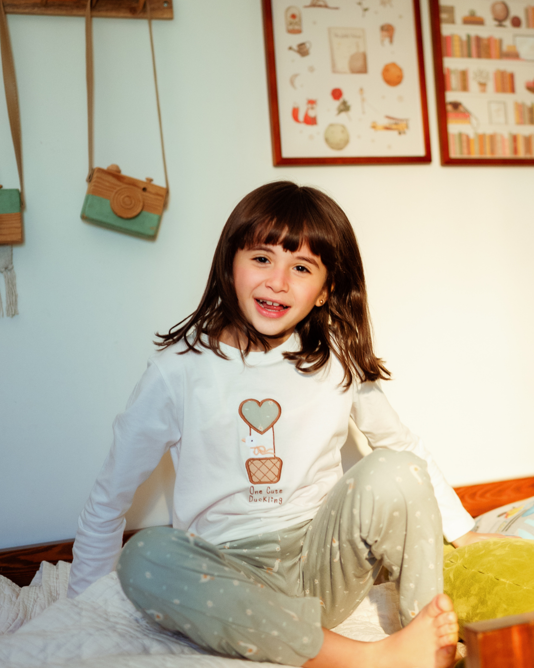 نقدم لكم أجمل بيجامة لطفلتك الصغيرة - بيجامة الأطفال البنات بتصميم Little Duckling الجميل! هذه البيجامات مصنوعة من مادة بارازولا القطنية الناعمة والمريحة، وهي مثالية لنوم هانئ أثناء الليل. متوفر بمقاسات 2 و4 و6 و8 و10 وبألوان Bestag النابضة بالحياة، سيكون طفلك الصغير مريحًا وأنيقًا. اجعل وقت النوم ممتعًا مع هذه البيجامات الرائعة!