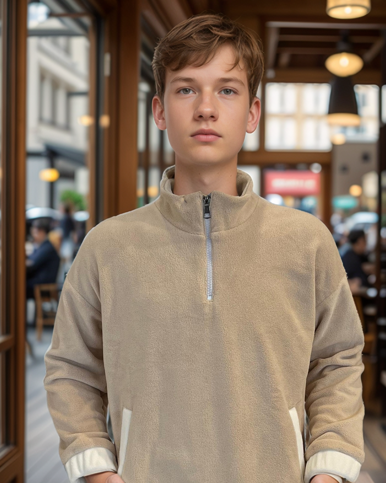 This Half Zipper Kids Jacket is the perfect outerwear for children. With long sleeves and a comfortable fit, it will keep your little ones warm and stylish. Available in three versatile colors - black, beige, and pistachio - and a range of sizes from 4 to 14, this jacket is suitable for both boys and girls. Made from cozy fleece velvet and 100% polyester, it is durable and easy to care for. Don't let your child face the cold without this essential jacket!