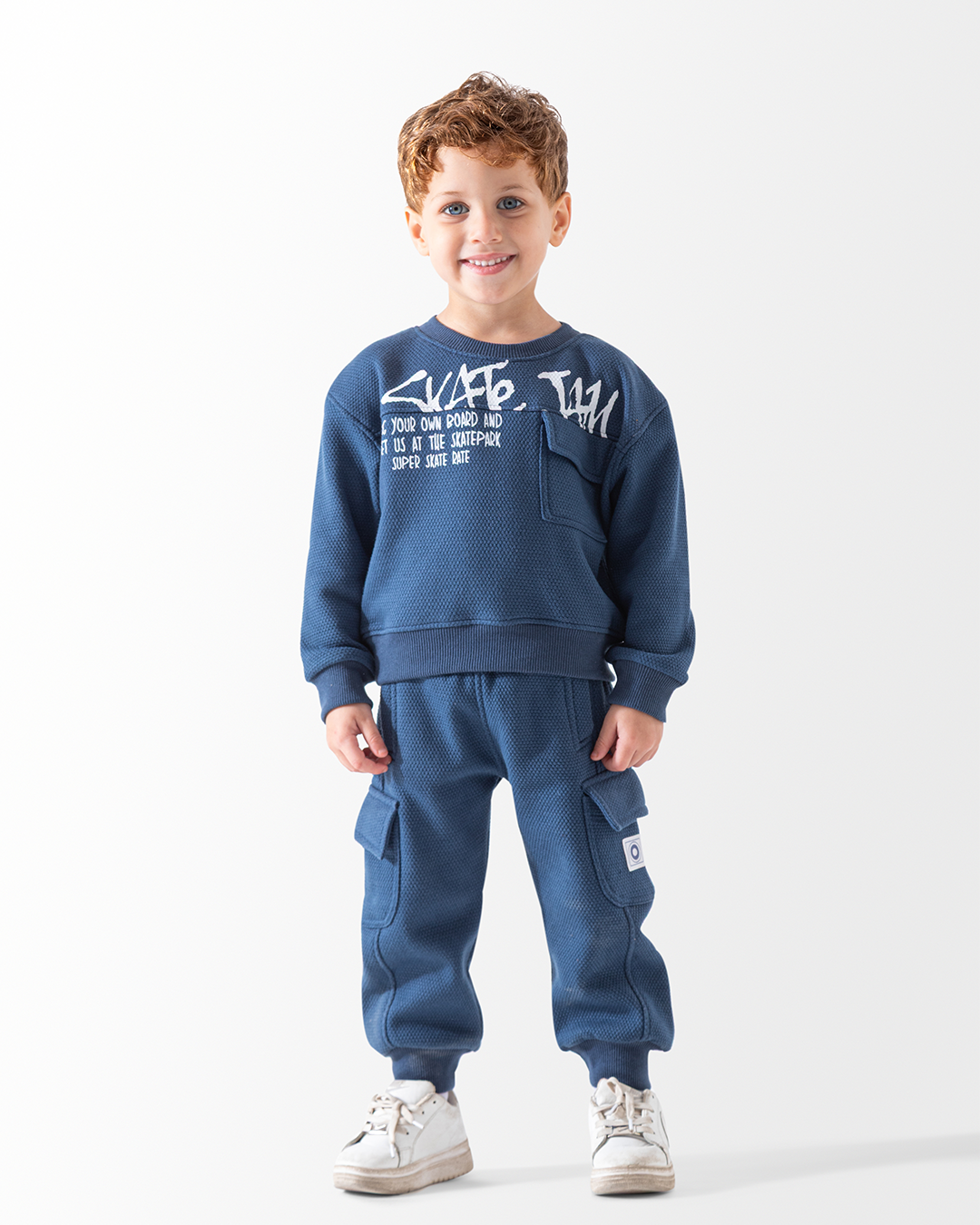 "Get your little boy ready for bed with our Skate Jam NB Sons Smit pajama set. Featuring a cool indigo color and enough room for easy movement, these pajamas are perfect for any skate-loving kid. Available in sizes 9 months, 12 months, and 18 months. Order now and give your little one the ultimate comfort for a good night's sleep."
