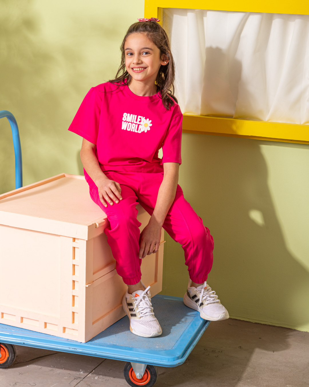 Add a pop of fun and happiness to your little girl's bedtime routine with these Sotra Smiley World pajamas! Available in medium size, these pajamas are perfect for kids. The vibrant fuchsia and ashen colors will surely brighten up her day. Sizes 6, 8, 10, and 12 are available for the perfect fit. Let her dream in comfort and style with these adorable pajamas.