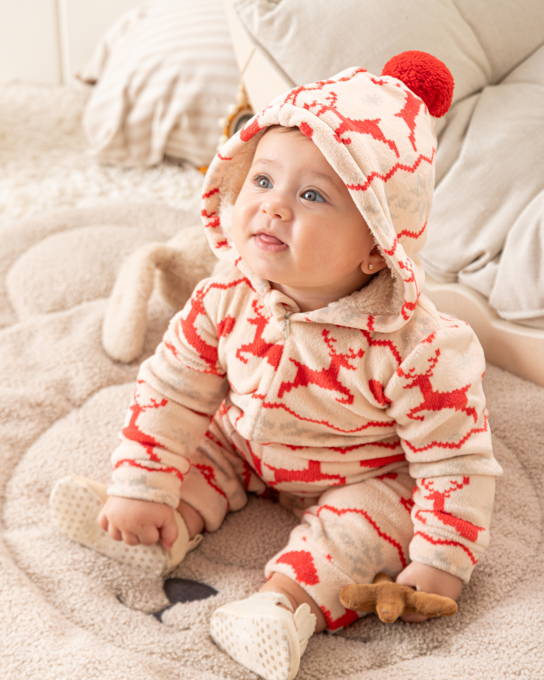 Introducing the cutest addition to your little one's wardrobe - our beige Baby Onesie with a Hoodie Hearts! Made from soft fleece velvet, this onesie will keep your baby cozy and warm. Available in sizes 3 months, 6 months, 9 months, and 12 months, it features an adorable heart design on the hoodie. Perfect for everyday wear or as a gift for a new baby, this onesie is a must-have for your little bundle of joy.