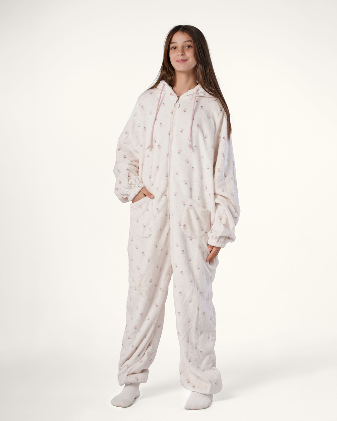 Introducing Salobate's Six and Pockets of Winter Roses Kids Onesies, the perfect combination of comfort and style. Made from soft and cozy polar fleece material, these off-white onesies are perfect for keeping your little ones warm during the colder months. Available in sizes 12-14, 2-4, 4-6, and 8-10, these onesies feature six pockets for convenience and a touch of floral elegance with winter roses design. Upgrade your child's loungewear with Salobate Six and Pockets of Winter Roses Kids Onesies.