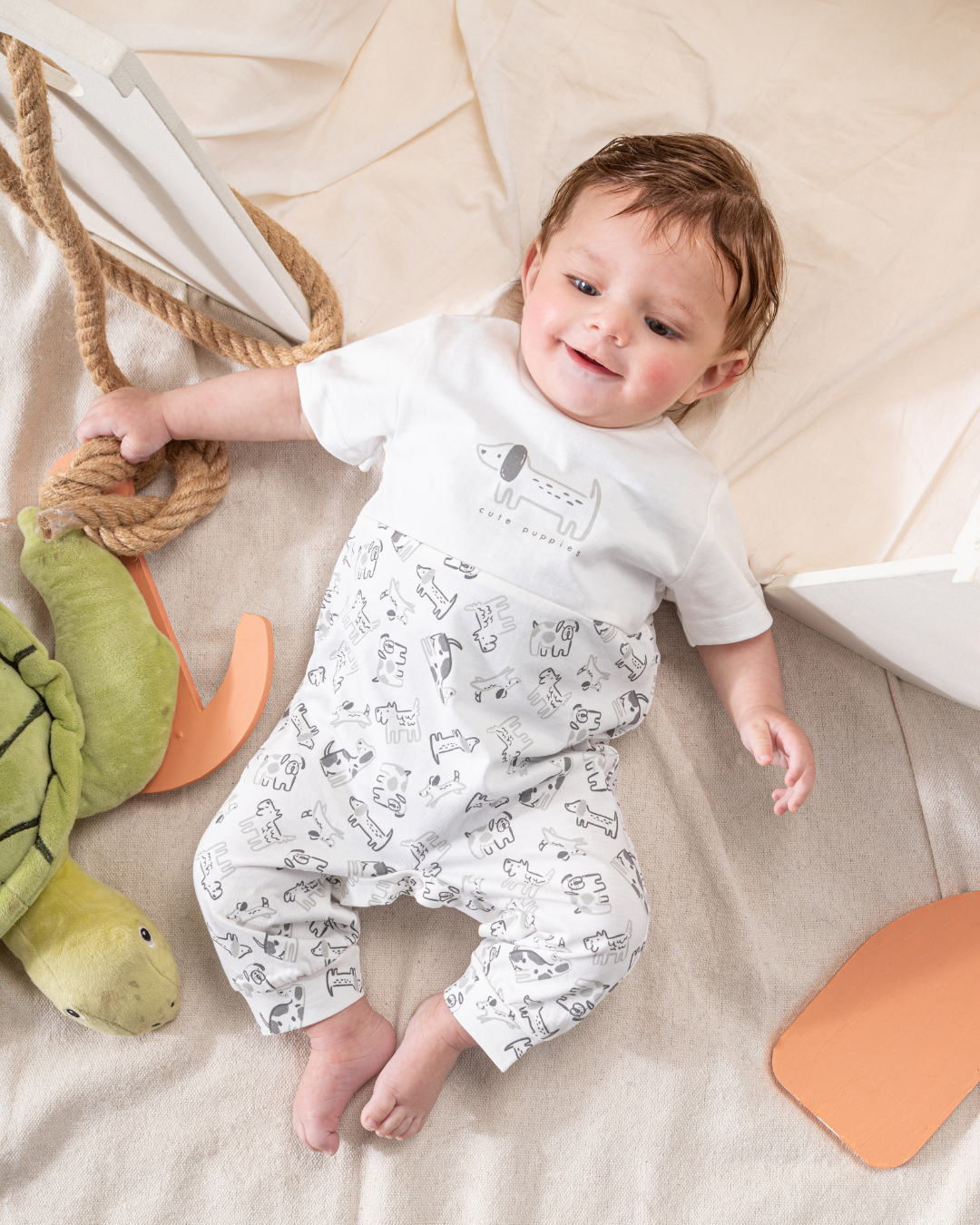 Introducing our adorable Cute Puppies Baby Bodysuit, perfect for your little one! Made with high-quality Parasola 100% cotton, this bodysuit is soft and comfortable for your baby's delicate skin. The off white color adds a touch of sweetness, and the available sizes of 3 months, 6 months, 9 months, and 12 months make it easy to find the perfect fit. Get your hands on this charming bodysuit for your precious baby today!