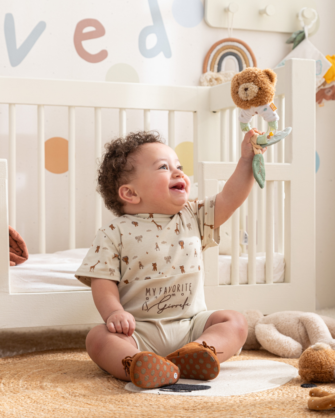 Introducing the perfect addition to your little one's wardrobe - the Giraffe Salopette Audlay! Made with soft and comfortable jersey 100% cotton material, this adorable baby onesie comes in a lovely beige color. Available in sizes 3 months to 12 months, it is perfect for your growing baby. The cute giraffe design adds a fun touch to their daily outfits. Order now and watch your little one shine in this stylish and cozy onesie!