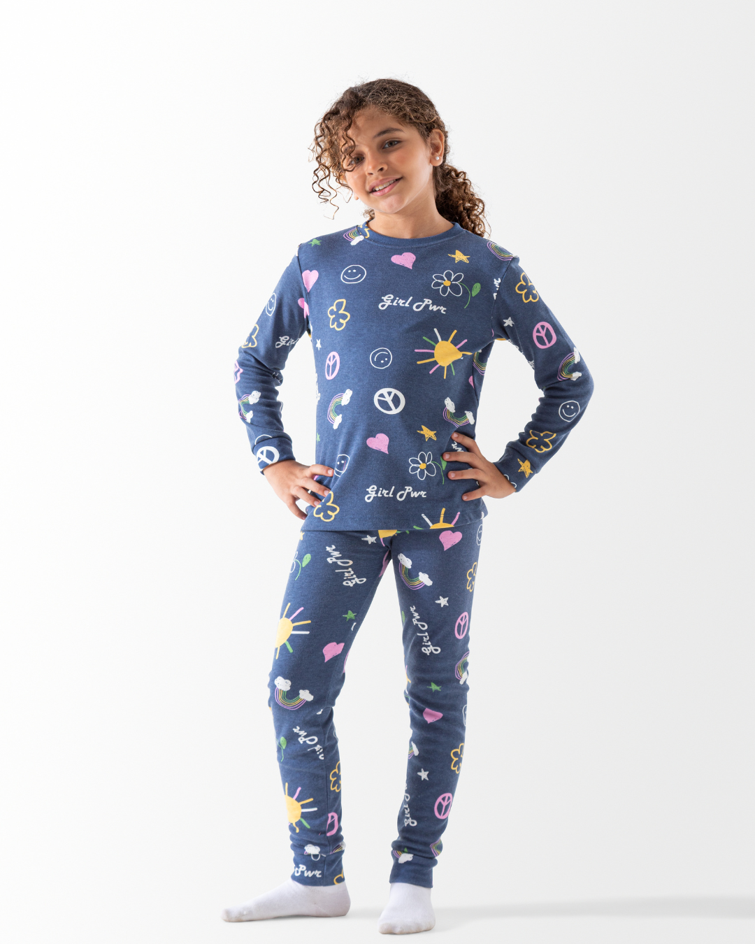 Introducing the ultra-adorable Girls Marvy Banati Imprimés Par Le Soleil pajama set! Perfect for your little one to stay comfy and stylish all night long. Featuring a charming navy blue color and available in sizes 2-12, this pajama set is a must-have for any little girl's wardrobe. The playful design and soft fabric make it ideal for a good night's sleep. Grab yours today and watch your little one drift off into dreamland in style.