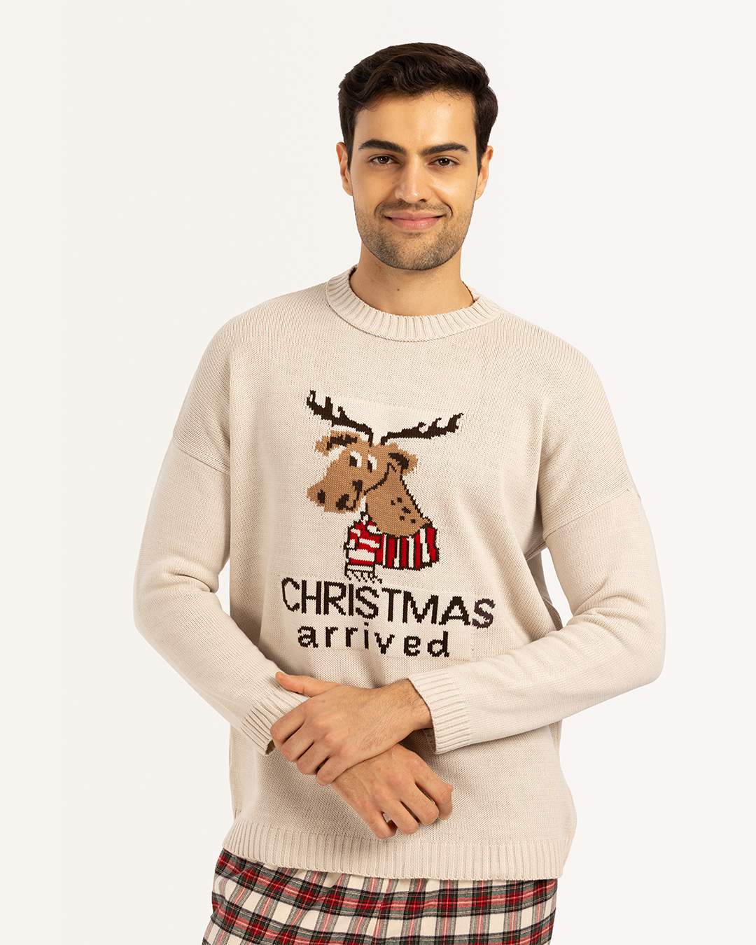 "Stay cozy and stylish this holiday season with our new creamy knit pajamas for men. Perfect for the colder weather, these pajamas will keep you warm and comfortable all night long. Available in sizes 2XL-3XL, L-XL, and S-M, there's a perfect fit for everyone. Treat yourself or a loved one to the gift of comfort and relaxation with our festive pajama set."