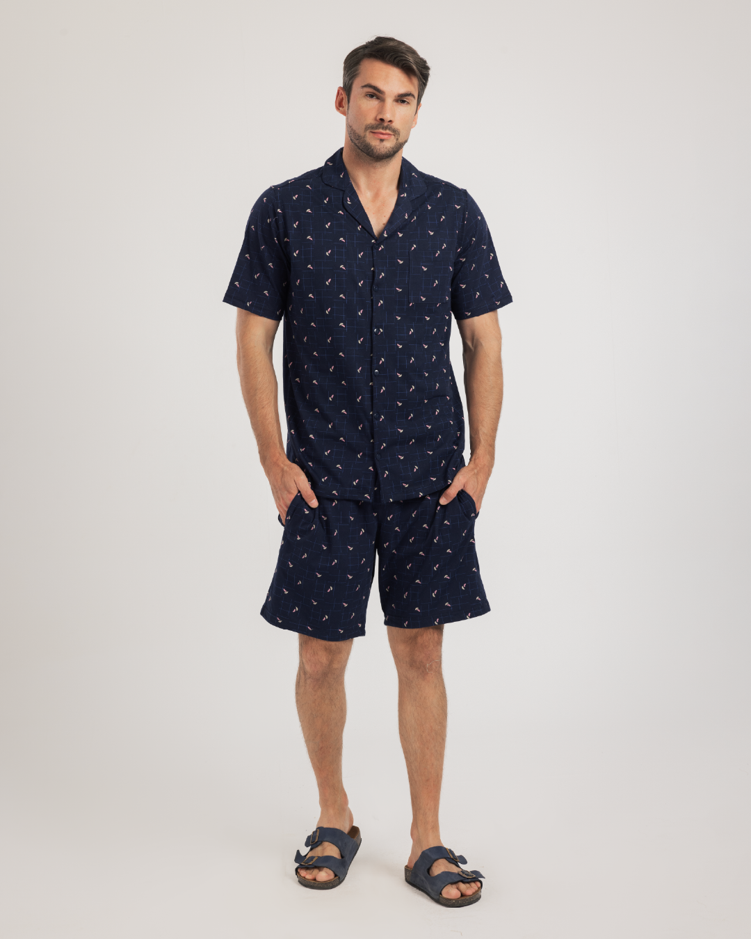 "Sleep in comfort and style with our Classic Men's Pajama, perfect for any man. Available in a sleek navy blue color, this pajama is a must-have for your sleepwear collection. Choose from sizes M, L, XL, and 2XL to find your perfect fit. Elevate your loungewear game and indulge in restful nights with our Masculin Classique Pajama."