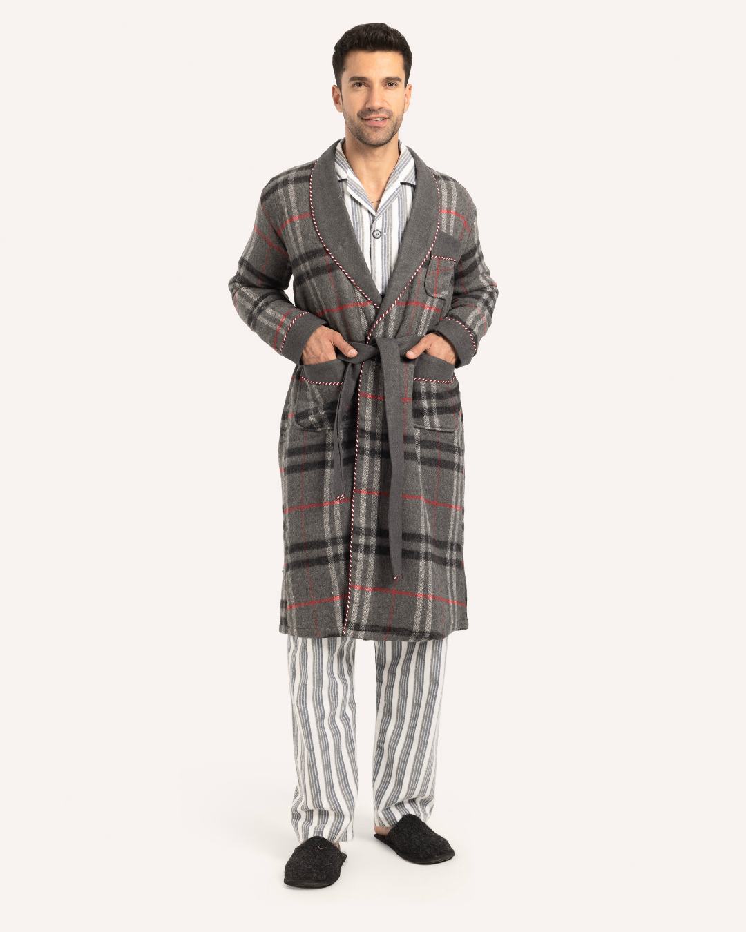 Introducing the ultimate luxury robe for men - Rob Men Double Face Carwa! Made with premium quality double face material, this robe offers the perfect blend of comfort and style. Available in a range of trendy colors including navy and green, gray and black, and brown and beige, you can choose the one that suits your personal style. With sizes from 50 to 56, this robe is a must-have for every fashion-forward man. Upgrade your loungewear collection with the Rob Men Double Face Carwa robe today!